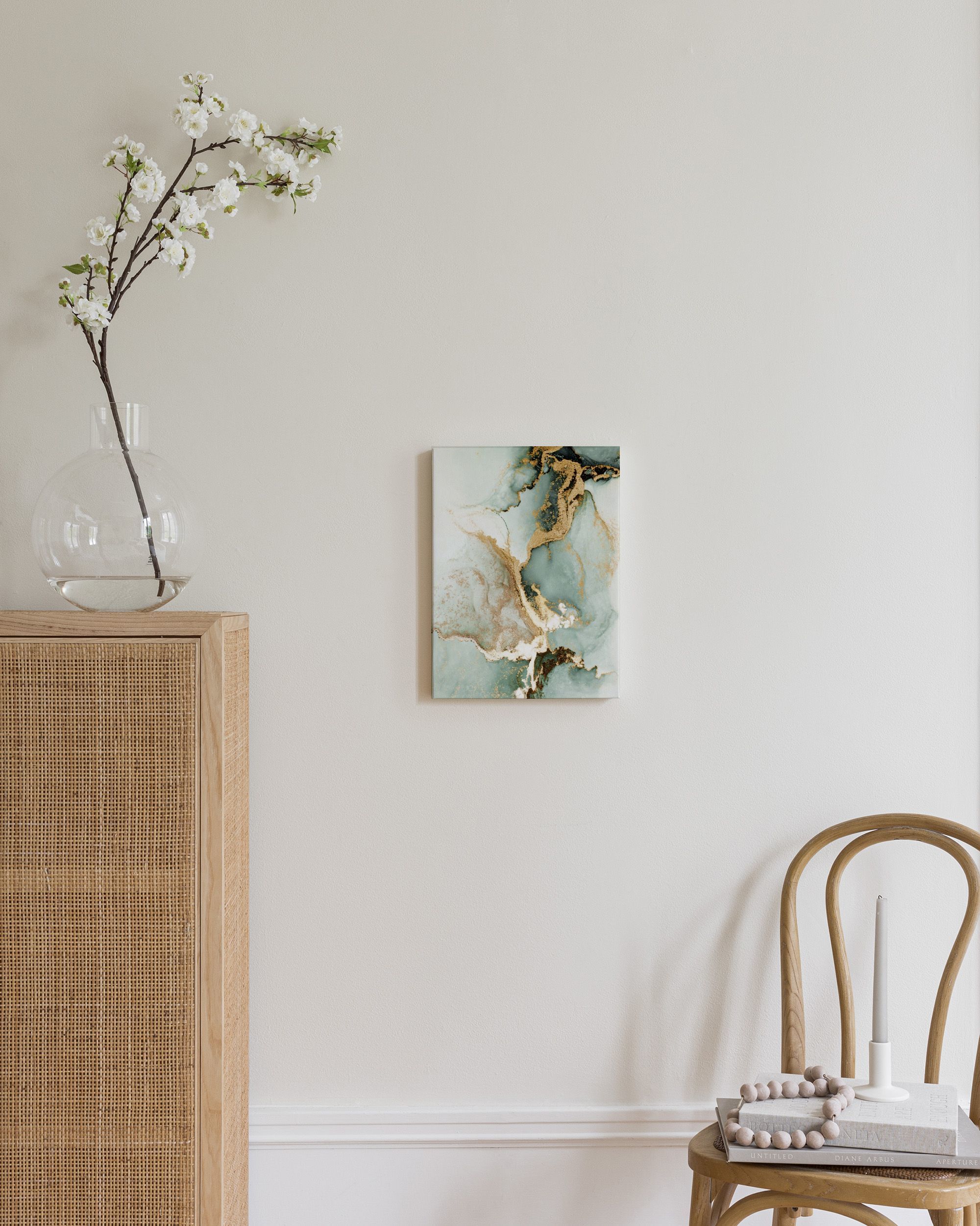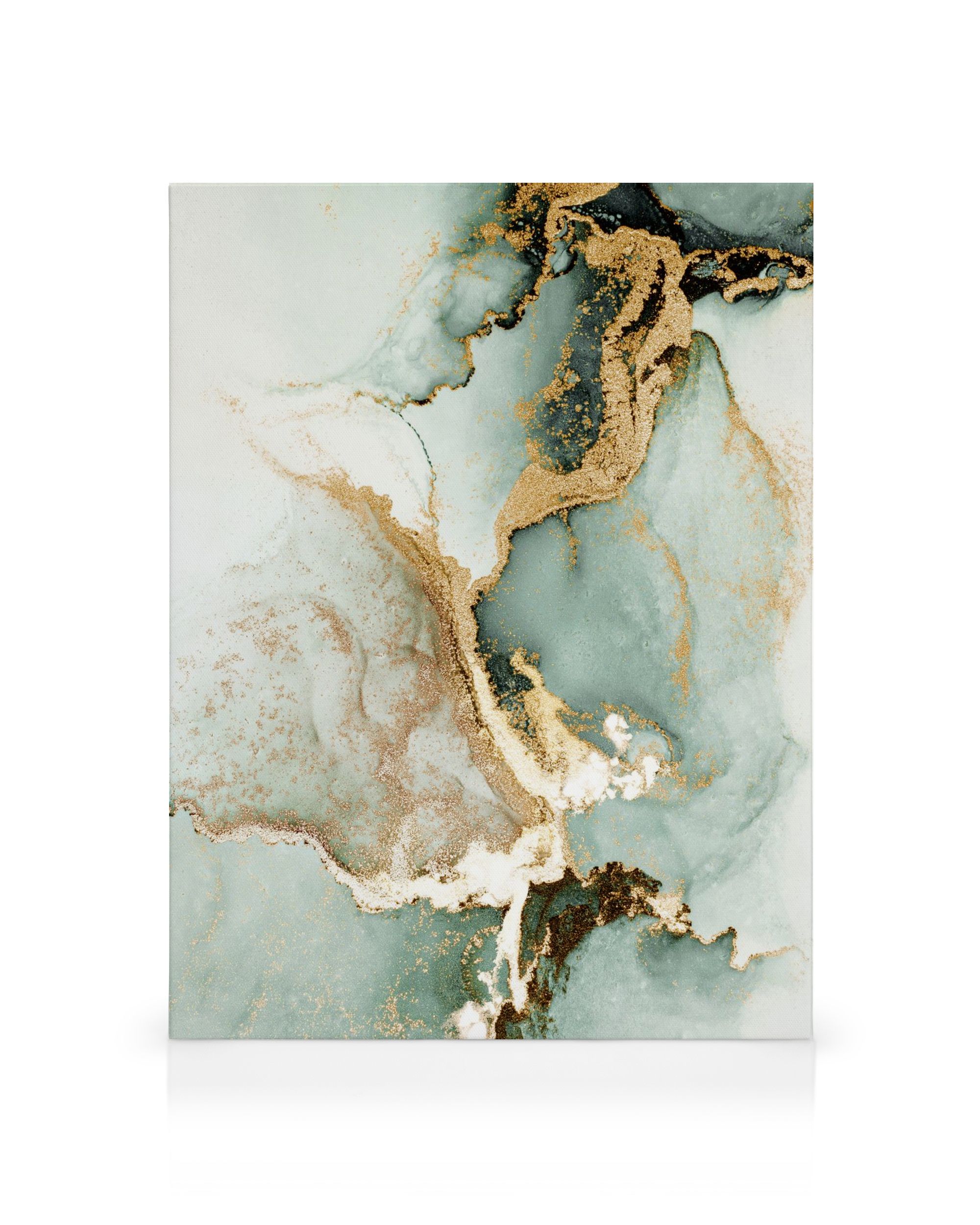 Fra 38,67 krEt vakkert lerretsbilde med grønne, hvite og gullfargede virvler. Den vakre marmor-effekten gir en luksuriøs og rolig følelse.